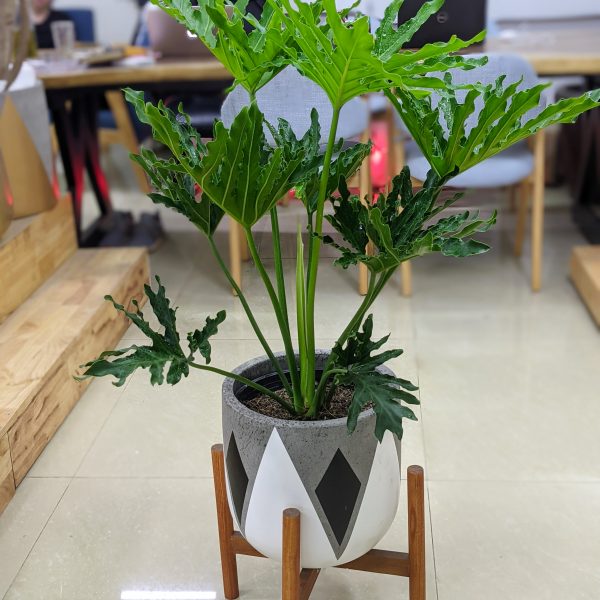 - Chiều cao trung bình của cây từ 70cm-1m5. Cây có thân thảo mảnh khảnh, lá to với màu xanh sẫm. Lá cây tạo nên điểm nhấn cho cây với lá xẻ, bẹ lá lớn xanh mướt.