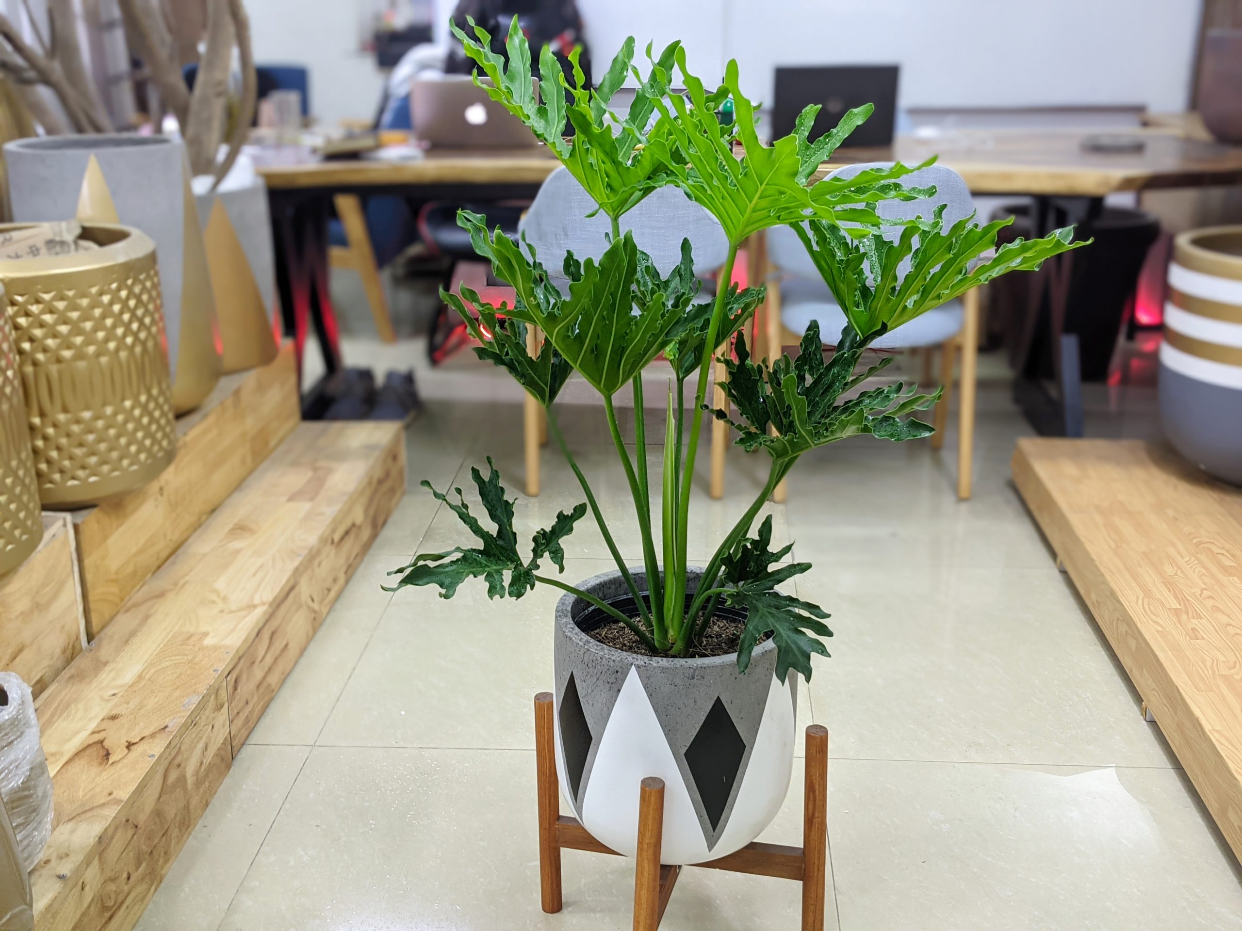 - Màu xanh tươi mát của cây giúp không gian trở nên hài hòa, thư giãn. Đây được xem là một trong những loại cây có công dụng xoa dịu, giảm stress rất tốt.