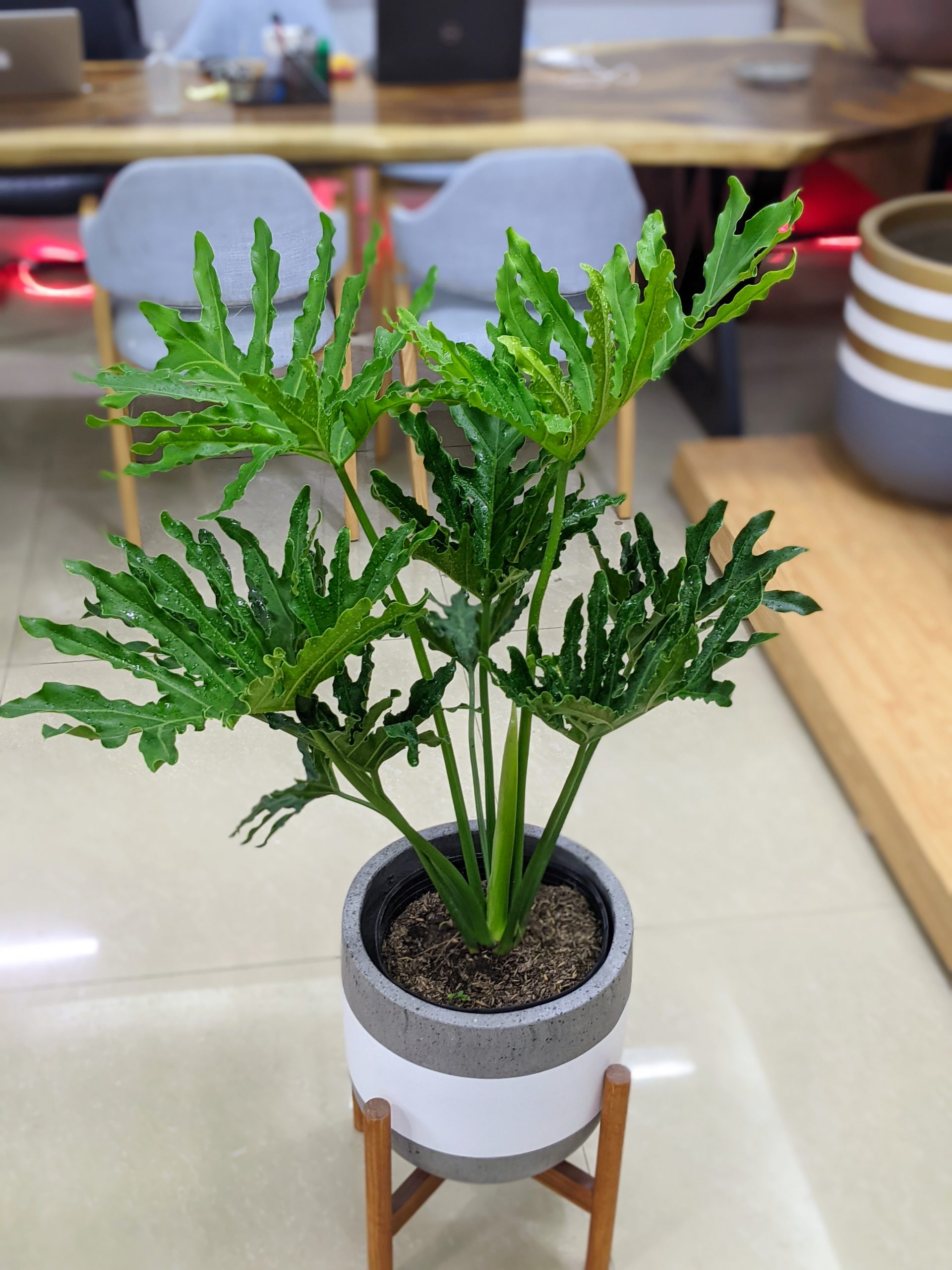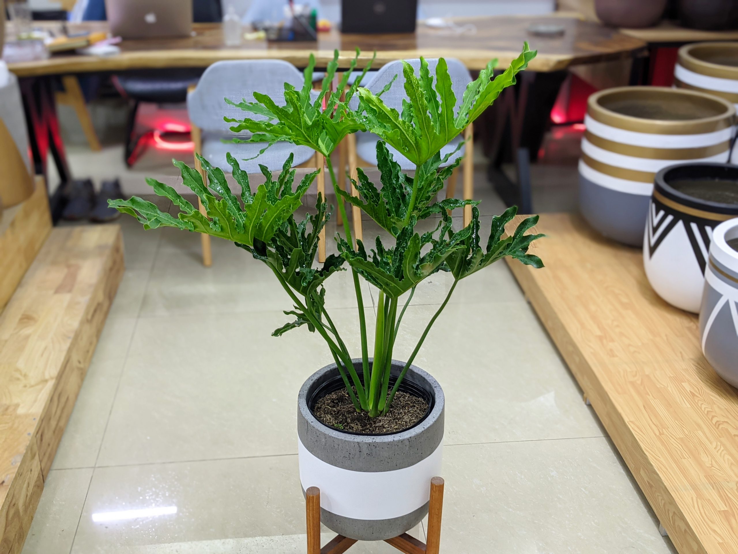 - Màu xanh tươi mát của cây giúp không gian trở nên hài hòa, thư giãn. Đây được xem là một trong những loại cây có công dụng xoa dịu, giảm stress rất tốt.